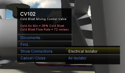 Some objects in the environment - most notably the Cold Blast Mixing Control Valve - are interactive. When you click on them or touch them, more information becomes available to you.