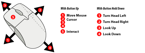 To turn your head and look around, swipe (touch-and-drag) in the main area of the screen (2). Lift your finger to stop moving.