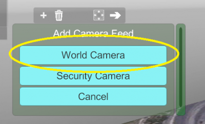 To add a World Sub-Camera, click on the Plus Icon in the Picture-In-Picture Window, then choose World Camera from the popup menu.