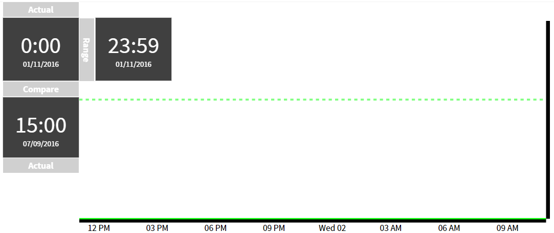 When you click the compare button, you’ll be given the same options as when clicking the range button. The only difference is that your reports will now show extra, dotted lines to show the measurements made at the chosen time.