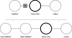 Pushing the add button on the right of the selected object allows you to place a new item between the selected object and the item currently up-stream from it. This is how you can insert items in the middle of existing relationships.