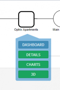 The selected asset has buttons to allow you to access the dashboard, details page and optionally charts related to your asset.