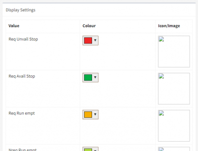 This page allows you to choose a colour or an icon (optional) for each of the possible states of any status or enumeration property.
