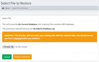 NOTE - To restore backups requires a fully-working ARDI system to be installed, which takes time and resources to set up. Our preferred method of creating a disaster recovery backup is to create a 'Bare Metal' backup by taking a snapshot of your virtual machine image.